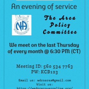 This is a workshop held every Monday to share about how music or songs are important to your personal recovery. Day/Time: Mondays from 8:00 to 9:00 PM CT Virtual Link: https://zoom.us/j/5605347763 Meeting ID: 5605347763, PW: KCB123 (ALL CAPS)