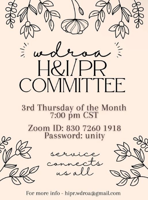 Public Relations is also seeking recovering addicts to help create PSAs so the addicts and the public can find our fellowship and our meetings.